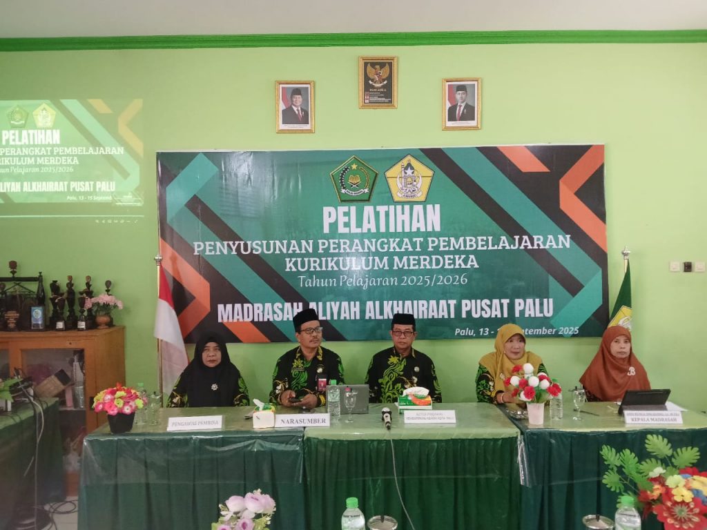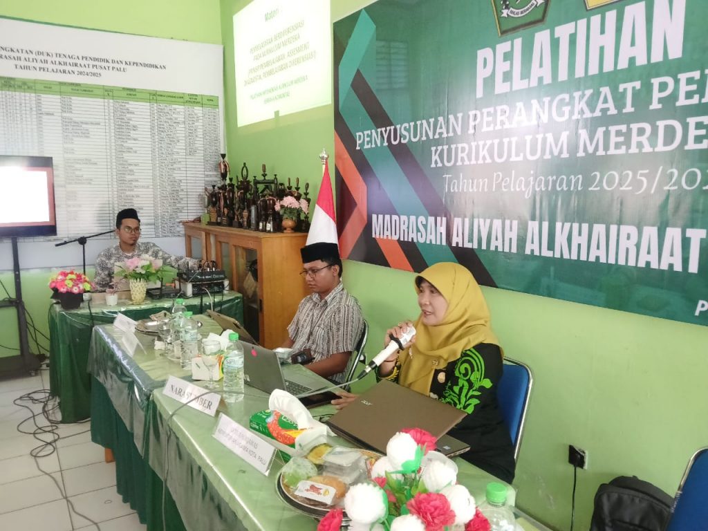 Humas MaalPuspa – MAS Alkhairaat Pusat Palu menggelar pelatihan “Penyusunan Perangkat Kurikulum Merdeka” Tahun Pelajaran 2025/2026 yang dilaksanakan di ruang guru madrasah (13/09/2025).